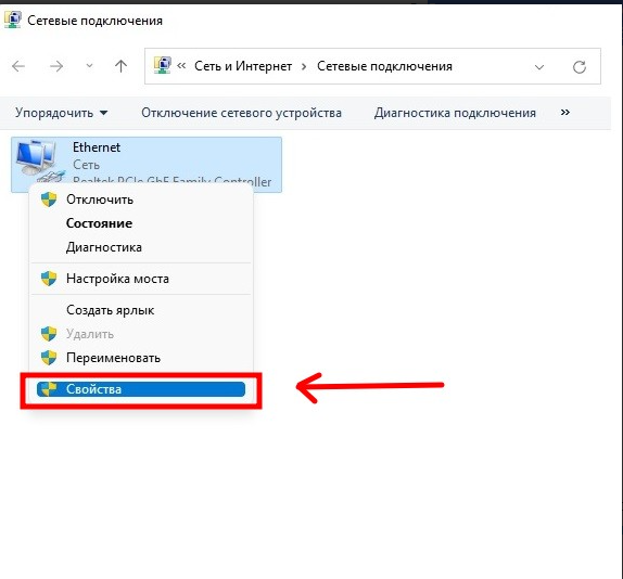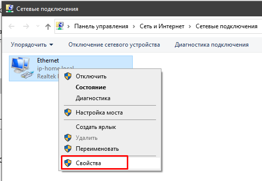 Ethernet. Справа появится основная информация по данному подключению. В строке