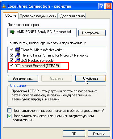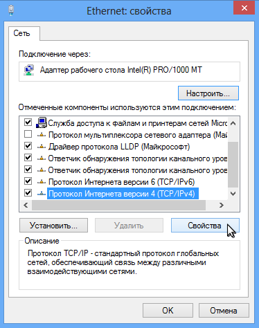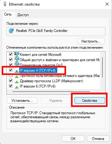 "Протокол интернета версии 4", нажмите на нём левой кнопкой