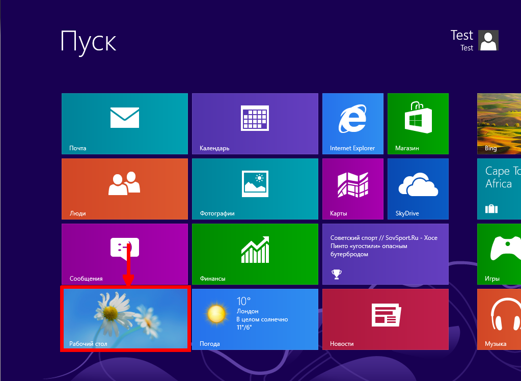 Находясь на рабочем столе, в верхнем левом углу нажимаем на значок