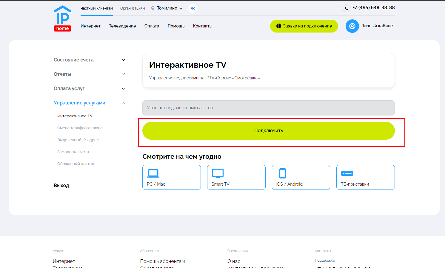 Как подключить Интерактивное TV («Смотрёшка»)?>